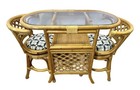 Vintage Glass Top Dining Table with Bamboo Rattan Chairs – 5-Piece Set
