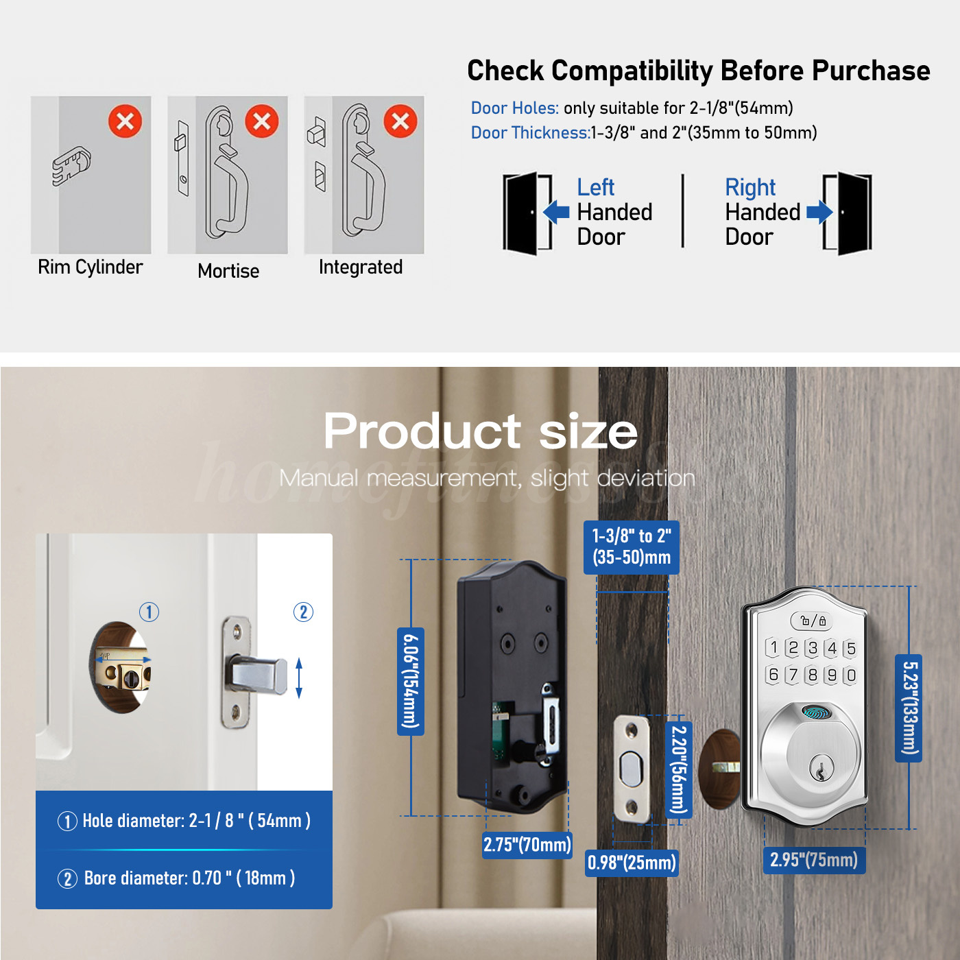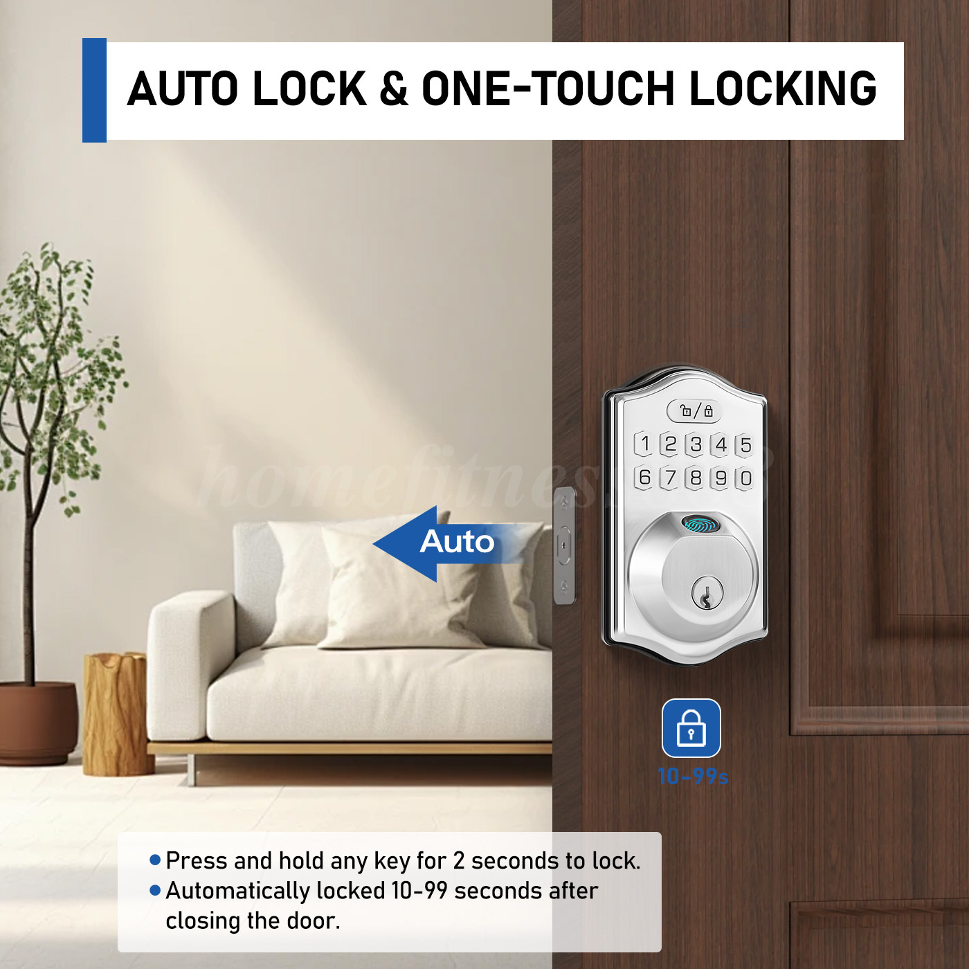 【Smart Locking, Enhanced Security】The intelligent locking feature allows you to set the automatic lock time from 10 to 99 seconds. One-touch auto-locking (press any key for 2 seconds) offers flexible and convenient security. Whether during busy routines or in urgent situations, you can lock the door quickly and easily.