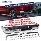 Fit 19-24 RAM 1500 Dual Exhaust Black Rear Bumper Assembly w/ Park Sensor Hole