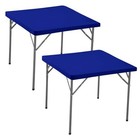 2 Pack Square Fitted Tablecloth Stretch Spandex Card Table 34X34 Inch Blue