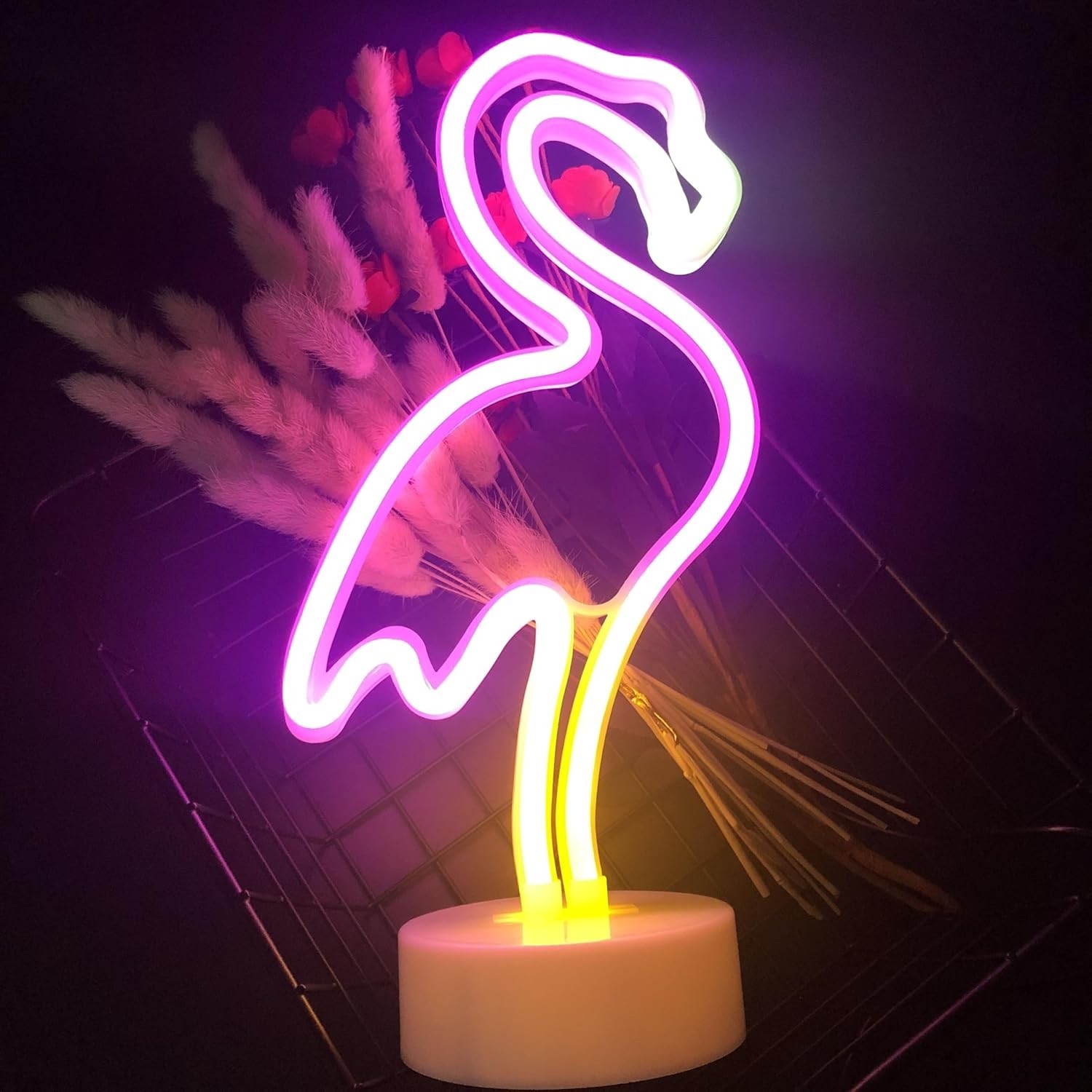 ★Wonderful Decoration: The flamingo neon light emits a soft pink light, and it will not be as bright as other bedroom decoration lights. You don't have to worry about the brightness bring a bad effect on our sleep. ★Healthy ABS plastic: Our flamingo neon signs uses odorless and strong ABS plastic. It is non-toxic, durable, endure over heat and short circuitry, which makes it be an ideal lighting design even for nurseries or kid’s room. ★Easy to use: This flamingo deocr light is designed with stable and removable base. Because of its convenience, you can put it on the mantle, shelf, table and dresser as a night light. And you also can place this colorful light on the wall as a holiday decoration. ★Safe and Long-Lasting LED: Constructed with energy-efficient LED neon flex tubing and an acrylic backing, this flamingo lamp provides a safer and more durable alternative to traditional neon signs, without heat or risk of flamingo light powered by USB or 3 AA batteries (not included), offers convenient, cord-free usage for enhanced flexibility and portability. ★Perfect Gift: Best for for Kids or Ladies In Christmas,New ,Birthday,Party,Performance,Special Occasions, Up Your Home with "Neon Light" Create a warm and romantic atmosphere with this neon light.
