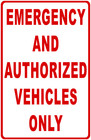 Emergency And Authorized Vehicles Only Sign. Size Options