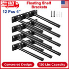 12 Pcs 6" Black Solid Steel Floating Shelf Bracket Blind Shelf Supports - Hidden