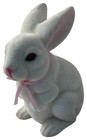 White Flocked Bunny Rabbit Pink Eyes Spring Easter Decor Figurine