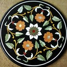 Round Black Marble End Table Top for Bar Floral Design Inlay Work Coffee Table