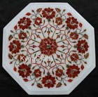 Marble Coffee Table Top Floral Design Inlay Work Breakfast Table with Royal Look