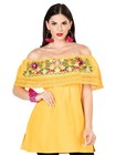 Artisanal Embroidered Blouse Floral Cotton Yellow