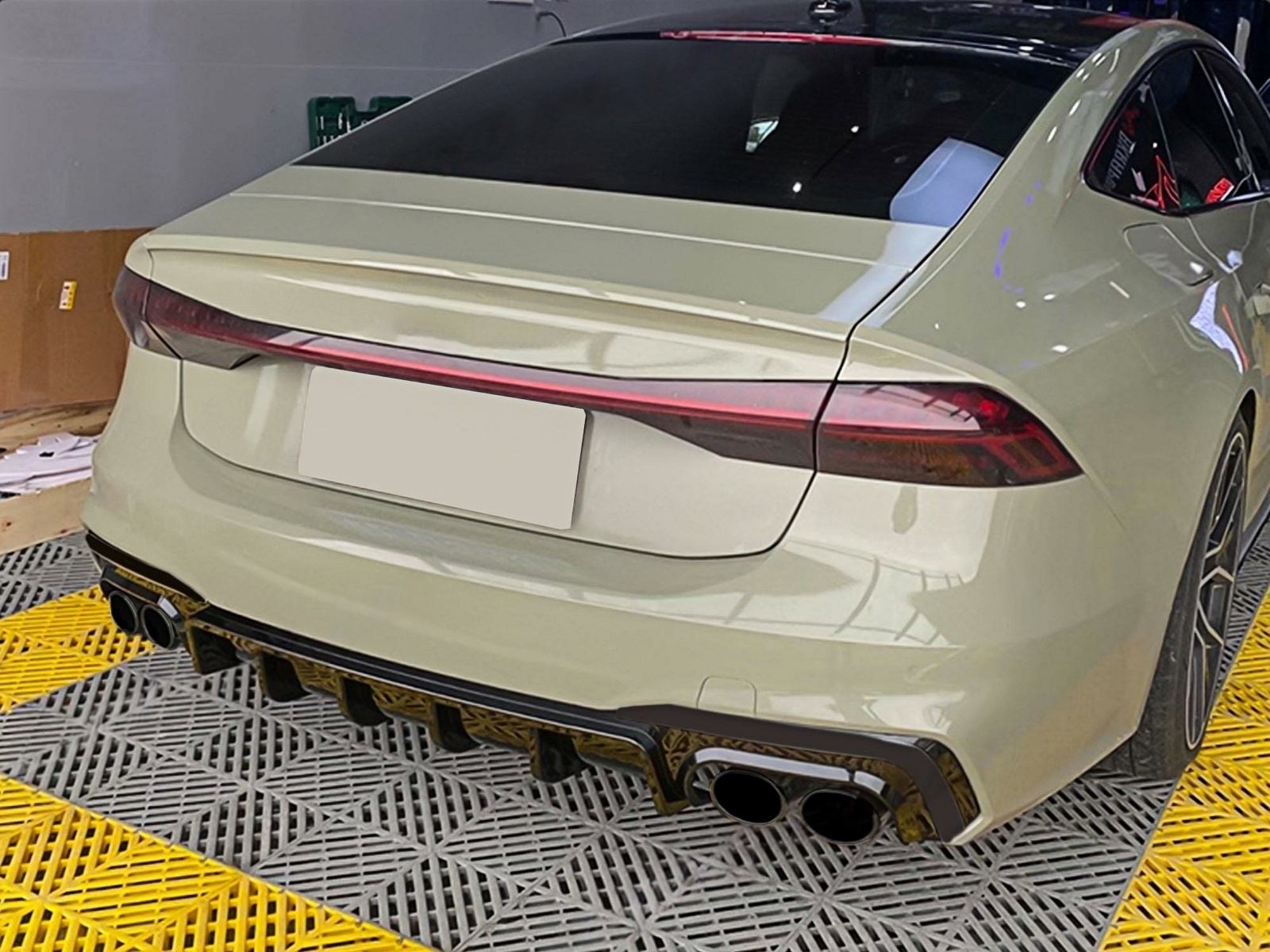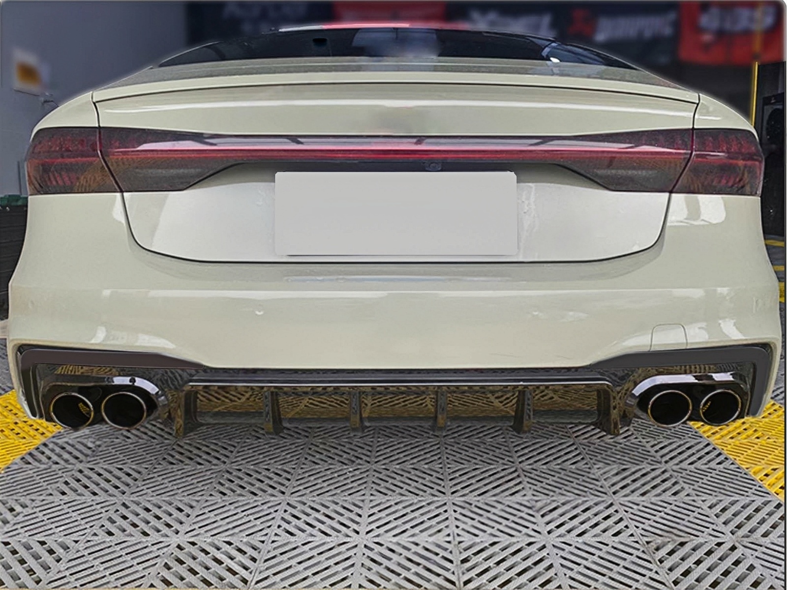 This Rear Bumper Diffuser RS7 Design crafted in PP polymer, equipped with double exhaust outlets with stainless steel muffler tips, adds a sporty touch on your Audi and convert it into a sporty RS7 model.