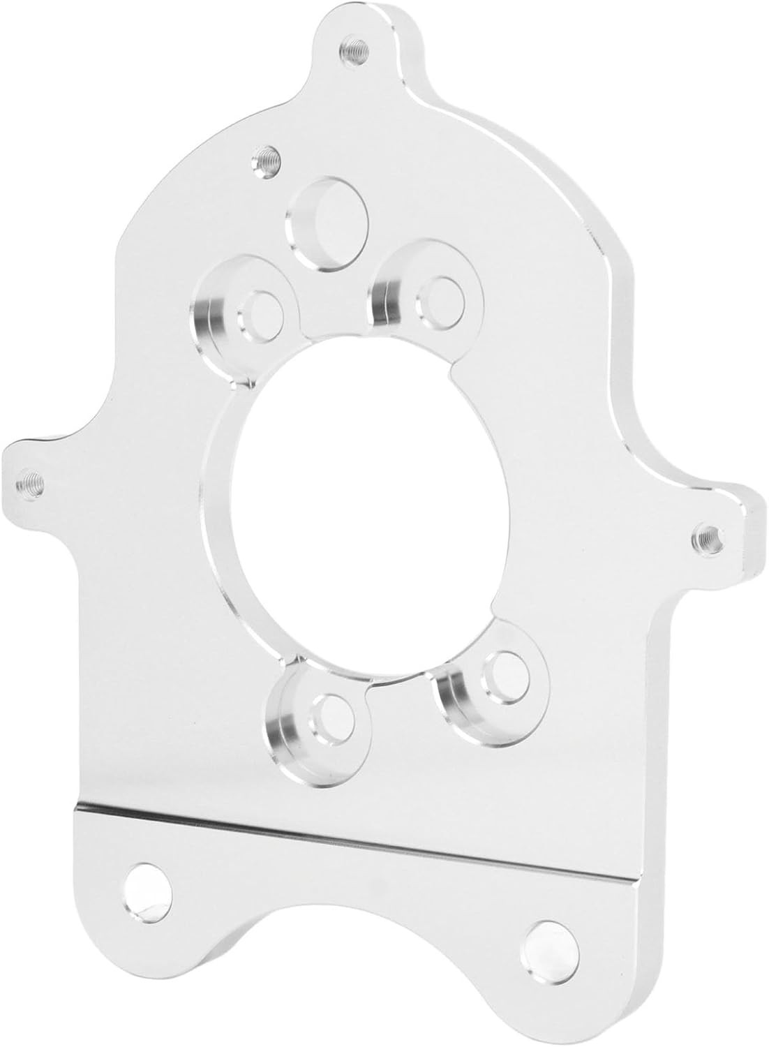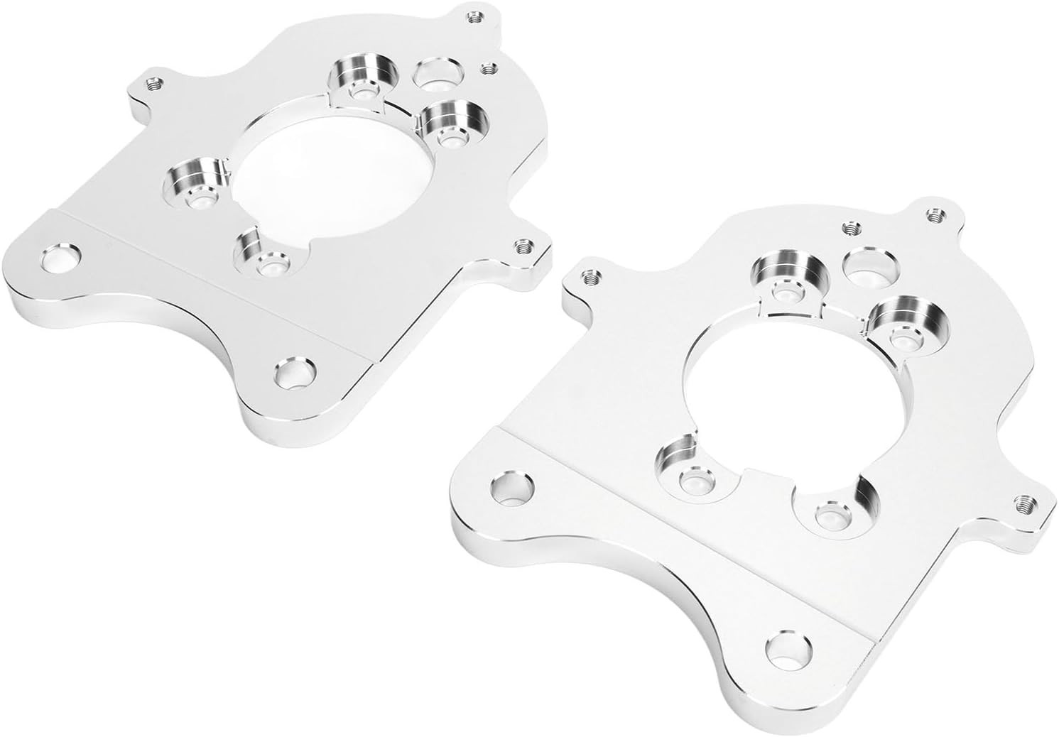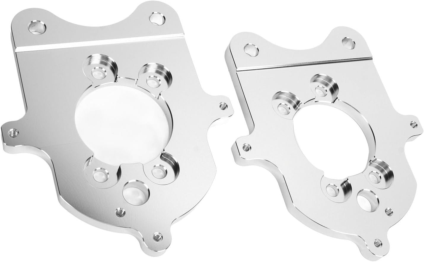 The product is a set of silver rear brake caliper conversion mounting brackets designed specifically for 1994-2004 Ford Mustang GT V6 vehicles. Manufactured by KIMISS, these high-quality aluminum brackets come with a 1-year manufacturer warranty and are made in the United States. The set includes a caliper bracket and is suitable for both the left and right sides of the vehicle. This performance part ensures a secure and reliable attachment for your brake calipers, offering a convenient solution for converting your braking system to a more efficient and effective setup.