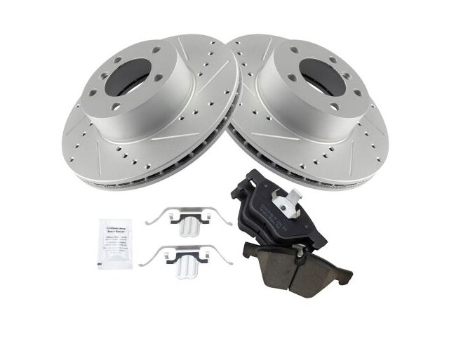 Package Contents: (1) Front Ceramic Brake Pad Set; (2) Front G-Coated Performance Brake Rotors