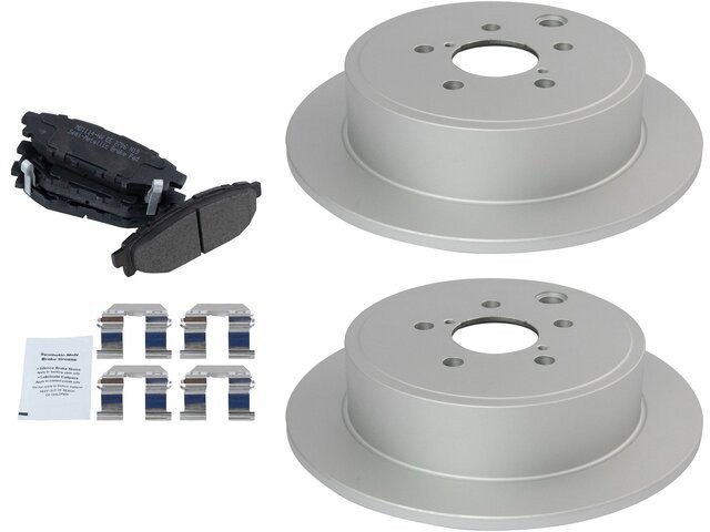 Package Contents: (1) Rear Semi-Metallic Brake Pad Set; (2) Rear Premium G-Coated Brake Rotors