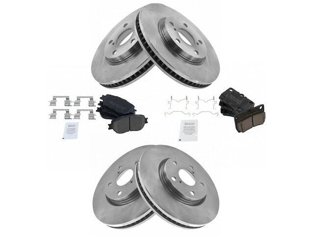 Package Contents: (2) Front Brake Rotors; (2) Rear Brake Rotors; (1) Front Ceramic Brake Pad Set with Contact Point Grease & Hardware; (1) Rear Ceramic Brake Pad Set with Contact Point Grease & Hardware