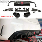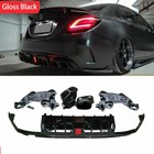 Rear Diffuser Bumper W/Exhaust For 2015-2018 BENZ W205 C63 C43 Sedan Gloss Black