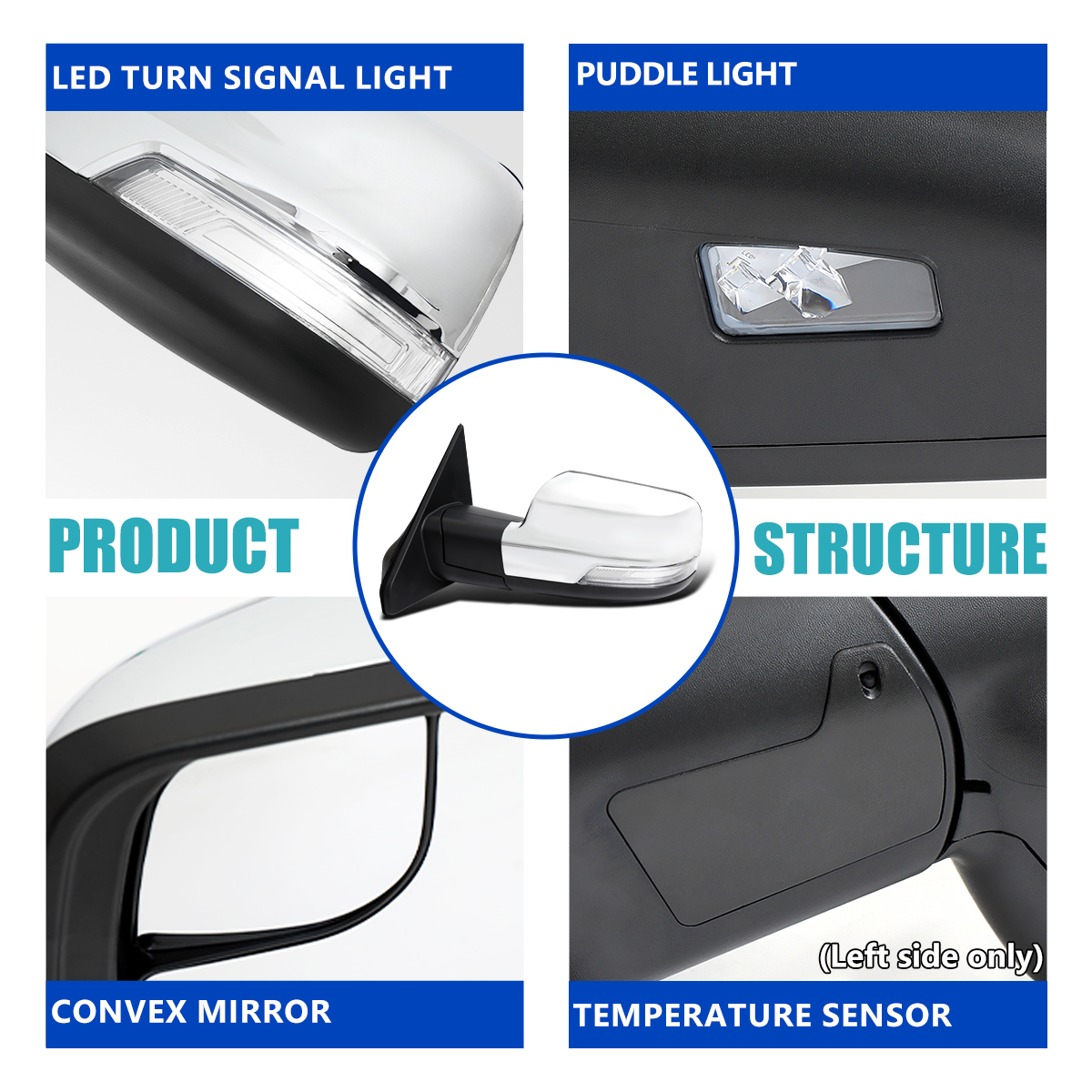 (Heated defrost / blind spot detection function / turn signal / puddle light only applies vehicles that originally come equipped with mentioned function vehicle type.)