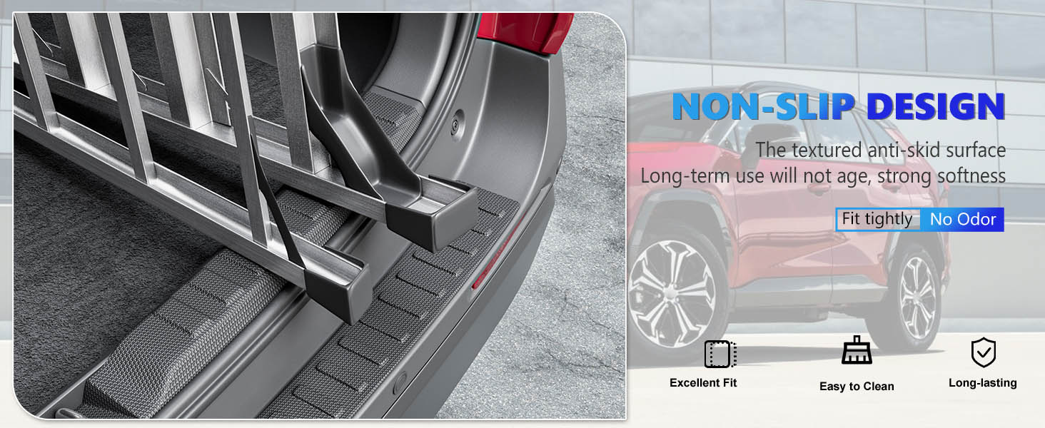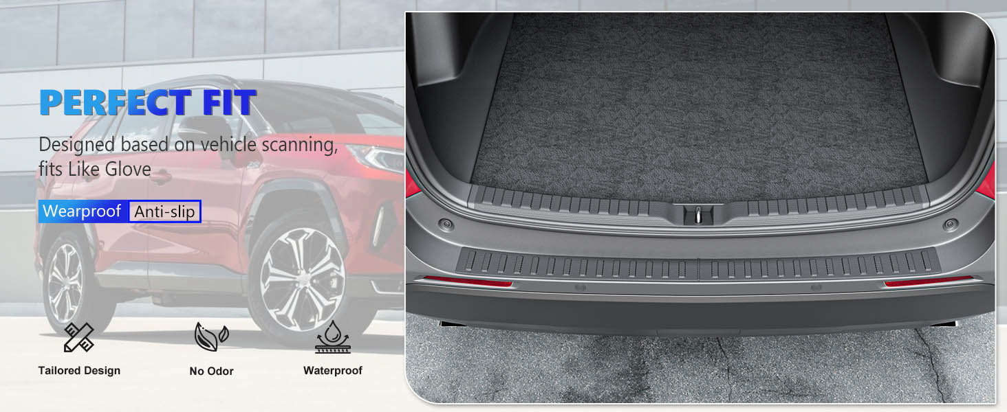 1.Exclusive Fitment: Our mat is compatible with 2019 2020 2021 2022 2023 2024 2025 Toyota RAV4 rear bumper protector mat. Please carefully check that your vehicle model matches it before placing an order. There are 2Pcs rear bumper protectors in the package.