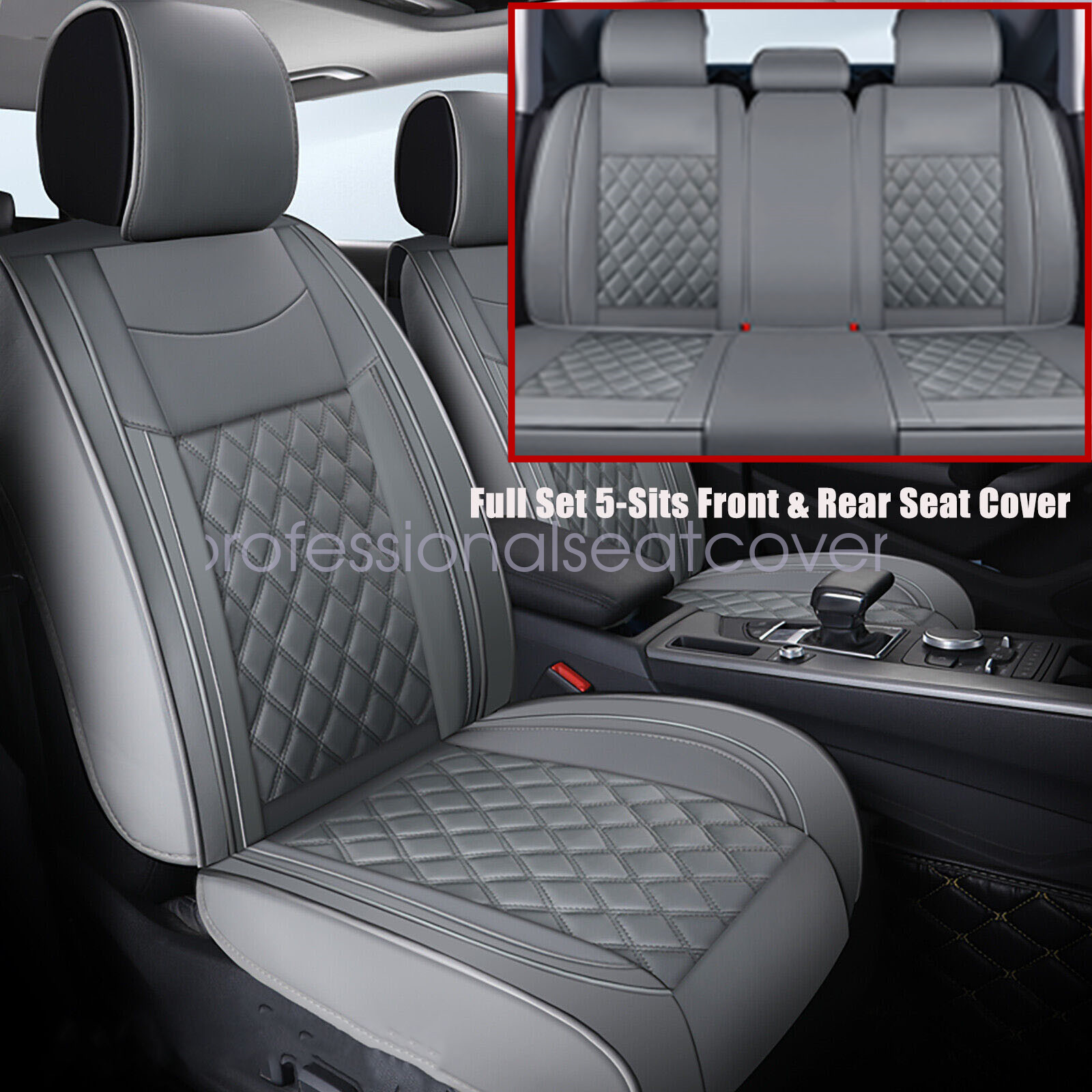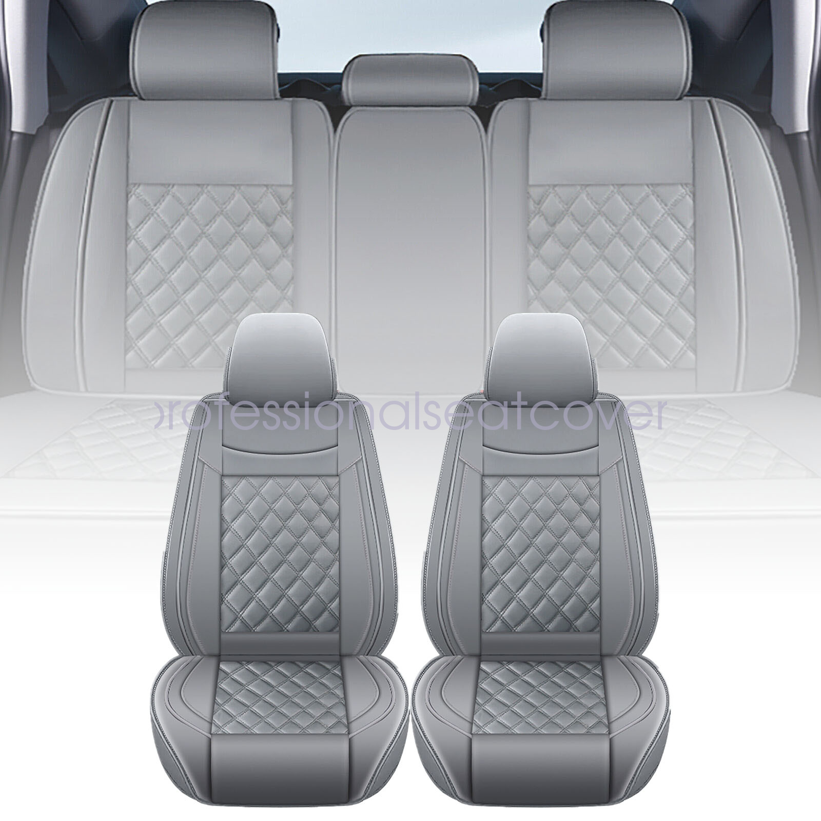 For Ford PU Leather 5 Seat Covers Full Set Front & Rear Protector Cushion Gray