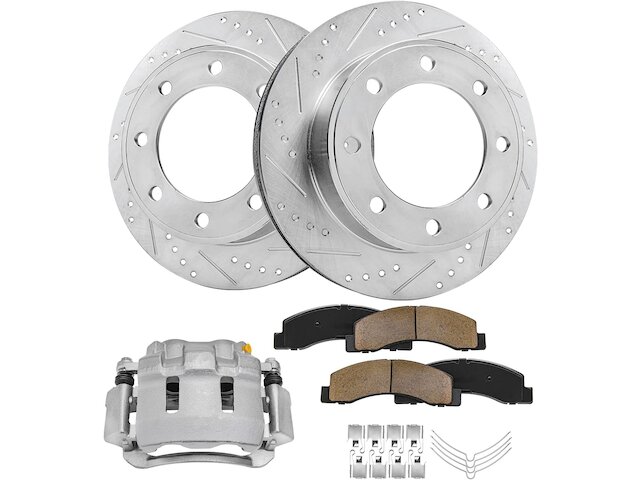 - Kit Includes: (2) Front Drilled and Slotted Brake Rotor + (2) Front Ceramic Brake Pad + (1) Front Right Disc Brake Caliper