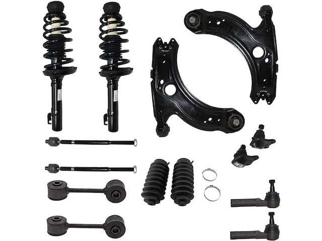- Kit Includes: (2) Front Strut w/Coil Spring + (2) Front Lower Control Arm + (2) Front Inner Tie Rod + (2) Front Outer Tie Rod + (2) Front Sway Bar Link + (2) Front Lower Ball Joint + (2) Tie Rod Boot