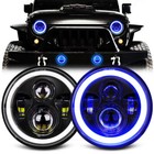 Pair 7" LED Headlights Blue Halo Amber Turn Signal for Jeep Wrangler JK LJ TJ CJ