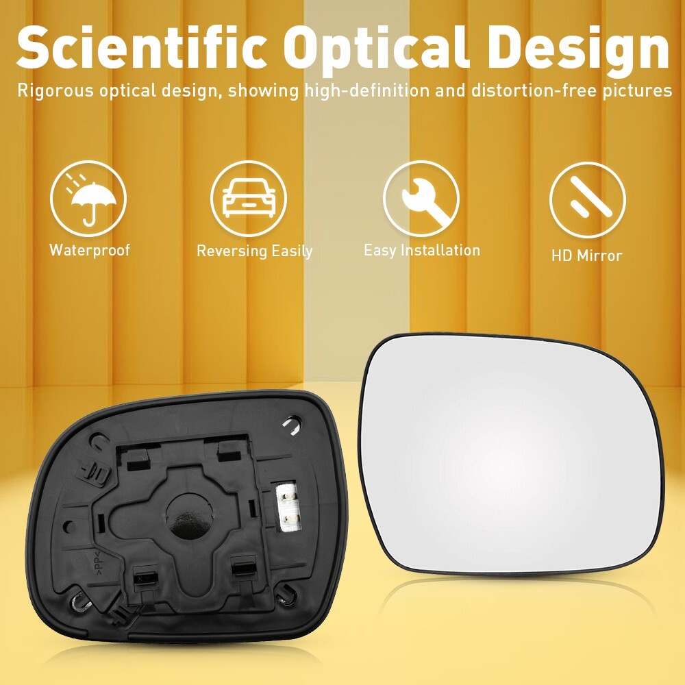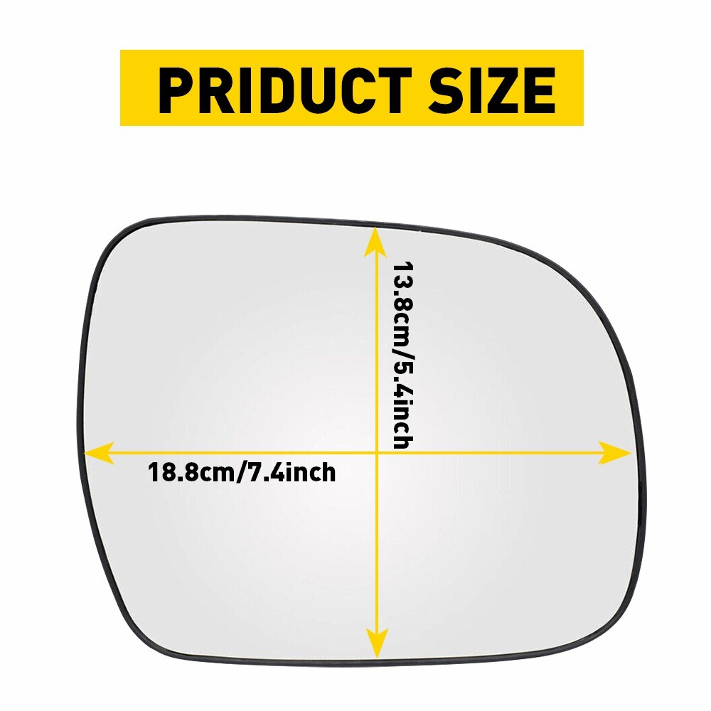Features: *Safety improvement This mirror glass can expand the driver's vision to observe road conditions and improve driving safety at the same time. *Superior material Use superior glass to ensure the quality and durability and extend its service lifespan. *Heated function Mirror glass with a heated function makes driving safer on rainy and snowy days. *Perfect fit Manufactured according to original data for perfect match with your vehicle. Direct replacement without other modifications.