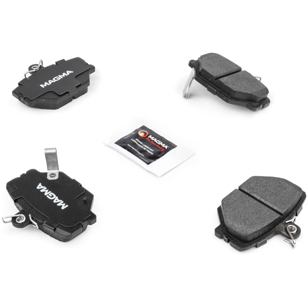 WHY MAGMA? - Today's harsh braking environments can create very high heat levels in your braking system which can reduce the vehicle's ability to stop. Extreme high temperatures can be reached in many braking situations such as - Stop and Go Traffic, Mountain Driving, Hauling or Towing, Emergency Stops, Spirited Driving and Long, Sustained Braking. At MAGMA Brakes, we use FIRE to fight FIRE. Our brake system components are made using advanced, state of the art techniques and treatments that ensure our brakes will stand up to the heat.MAGMA Premium brake pads feature...1. Scorched, copper-free friction formulations for optimal stopping power2. Heat-treated rubberized multi-layer shims for superior noise dampening3. Heat-tempered stainless steel hardware kits to restore the brake pad to caliper interface (where applicable)4. High-heat resistant brake lubricant included for lubricating critical points during pad installation