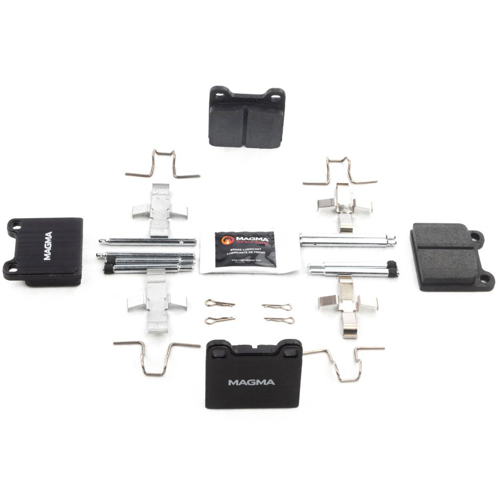 WHY MAGMA? - Today's harsh braking environments can create very high heat levels in your braking system which can reduce the vehicle's ability to stop. Extreme high temperatures can be reached in many braking situations such as - Stop and Go Traffic, Mountain Driving, Hauling or Towing, Emergency Stops, Spirited Driving and Long, Sustained Braking. At MAGMA Brakes, we use FIRE to fight FIRE. Our brake system components are made using advanced, state of the art techniques and treatments that ensure our brakes will stand up to the heat.MAGMA Premium brake pads feature...1. Scorched, copper-free friction formulations for optimal stopping power2. Heat-treated rubberized multi-layer shims for superior noise dampening3. Heat-tempered stainless steel hardware kits to restore the brake pad to caliper interface (where applicable)4. High-heat resistant brake lubricant included for lubricating critical points during pad installation