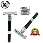 DELUXE LONG HANDLE BUTTERFLY OPENING DOUBLE EDGE SAFETY RAZOR + 5 SHAVING BLADES