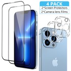4Pcs For iPhone 14 13 12 11 Pro Max Tempered Glass Screen Protector Camera Cover