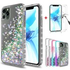 For iPhone 12 Pro Max Case Liquid Glitter Bling Cover + Tempered Glass Protector