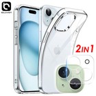 For iPhone 15 Pro Max Plus Clear Soft Case + Camera Lens Glass Protector Cover