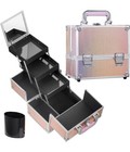 Frenessa Pink Makeup Box Train Case Portable Makeup Organizer Case 3 Trays