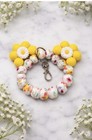 Yellow Floral Beaded Bracelet Key Chain for Women, Flower Accents