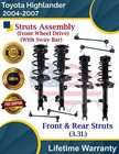 Front & Rear Struts W/Sway Bar For 2004-2007 Toyota Highlander 4X4 Lifetime Warr