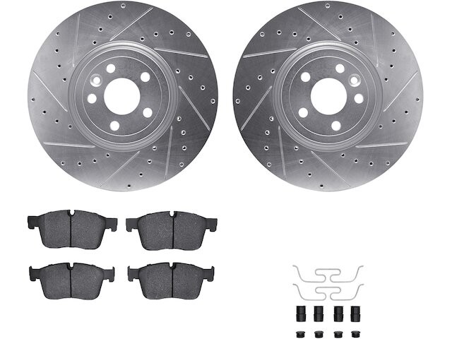 Rotors-Drilled and Slotted-Silver with 5000 Advanced Brake Pads includes Hardware