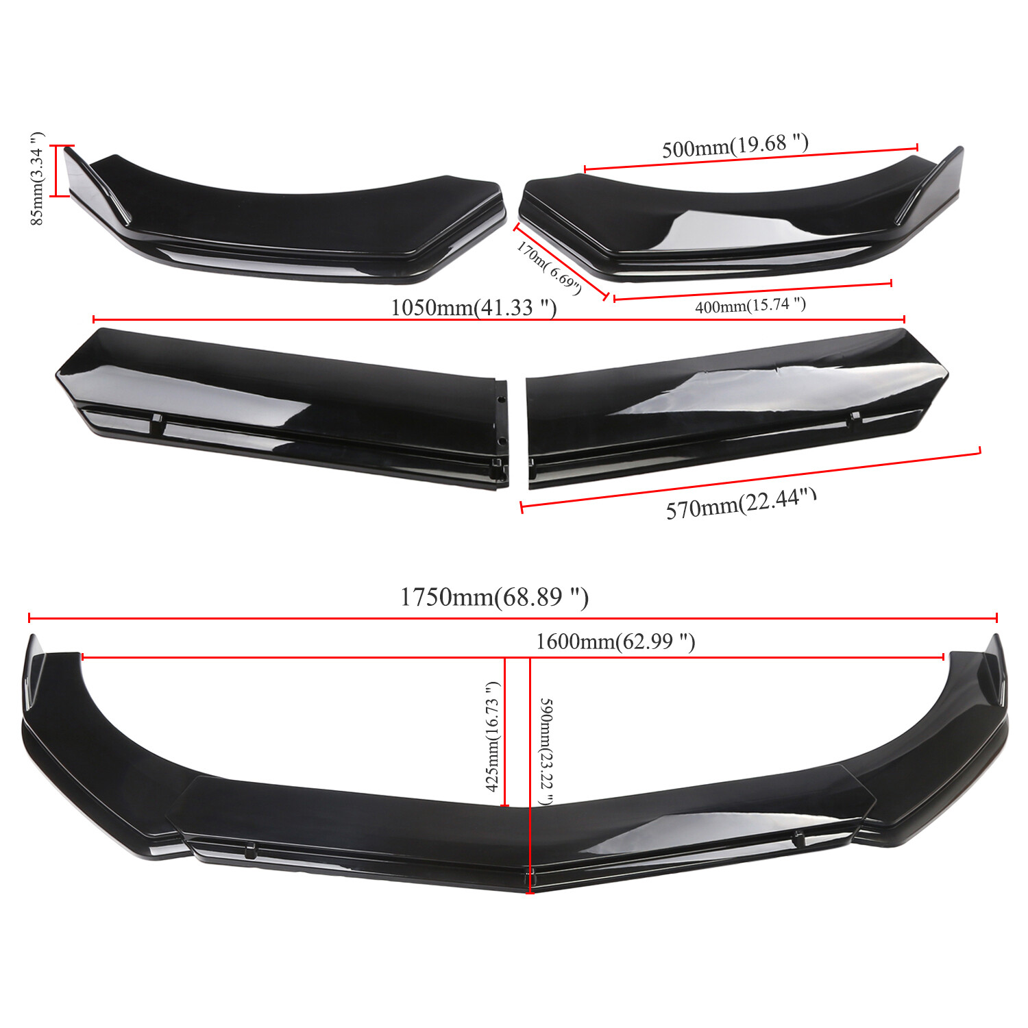 【Universal Front Bumper Lip】This front bumper lip splitter is fit for most models with front bumper size around 1680mm-1900mm.