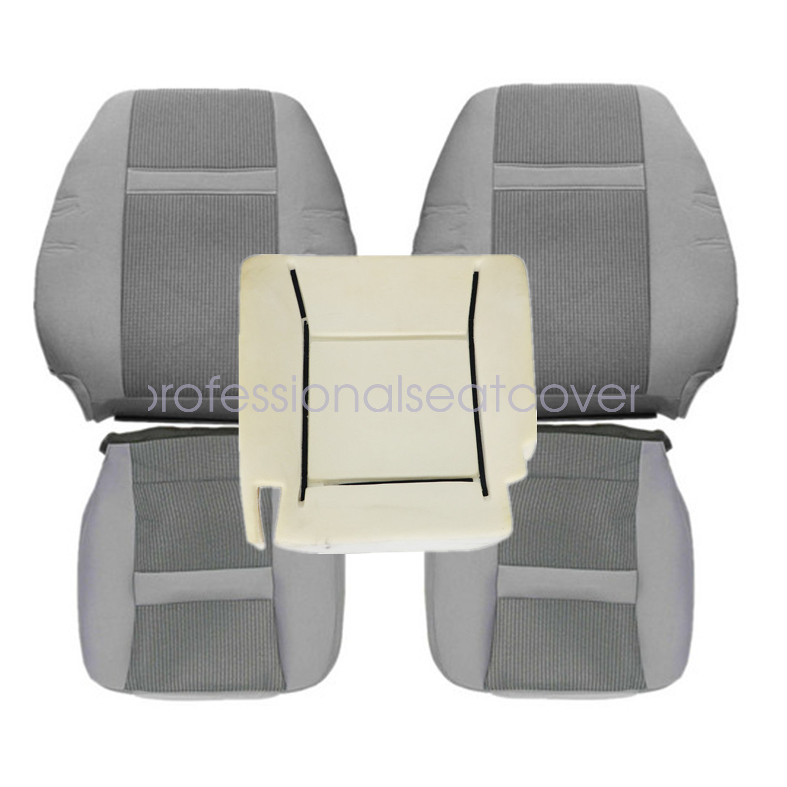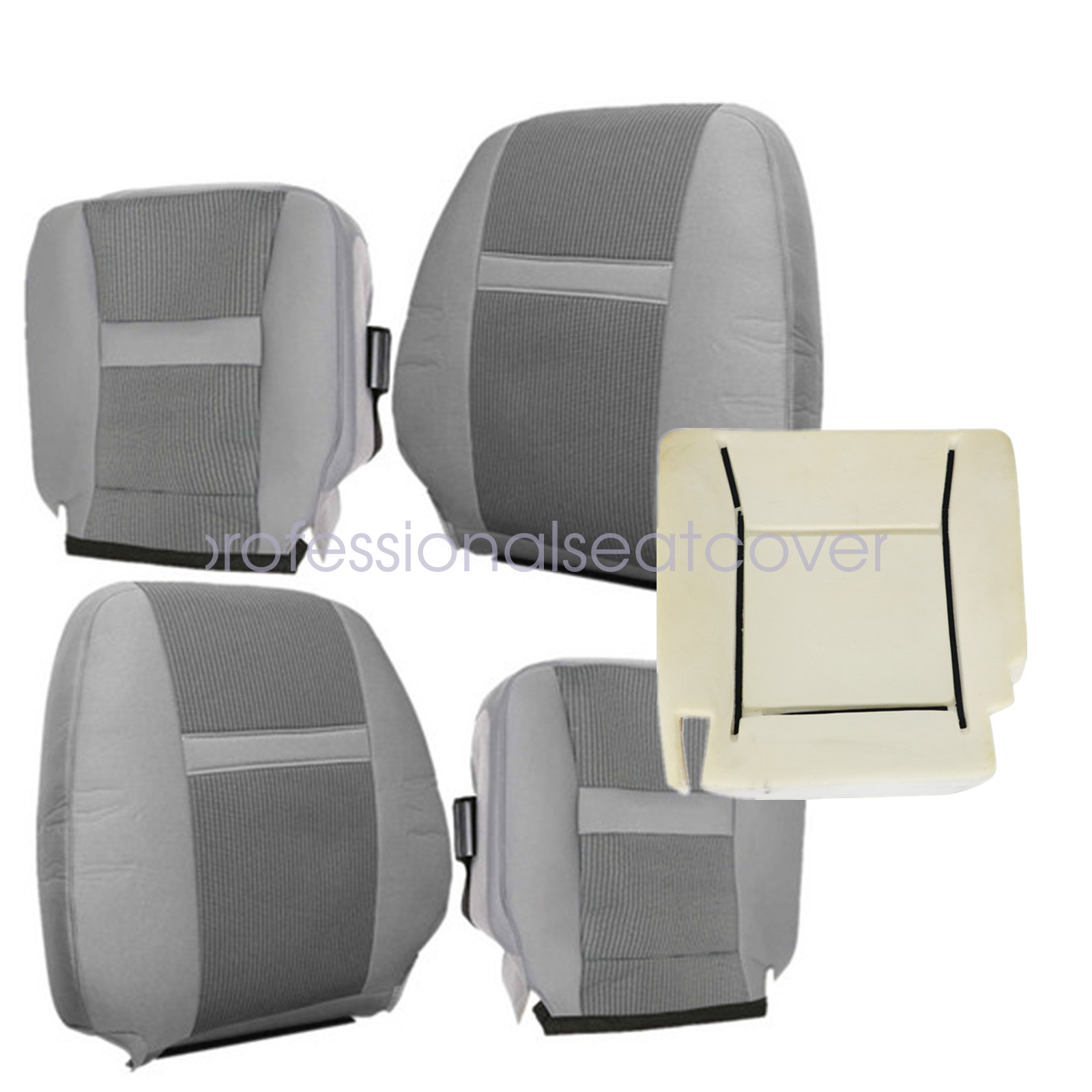 For 2006-2010 Dodge Ram 1500 2500 3500 Front Driver & Passenger Side Bottom & Lean Back Replacement Cloth Seat Cover & Foam Cushion Gray