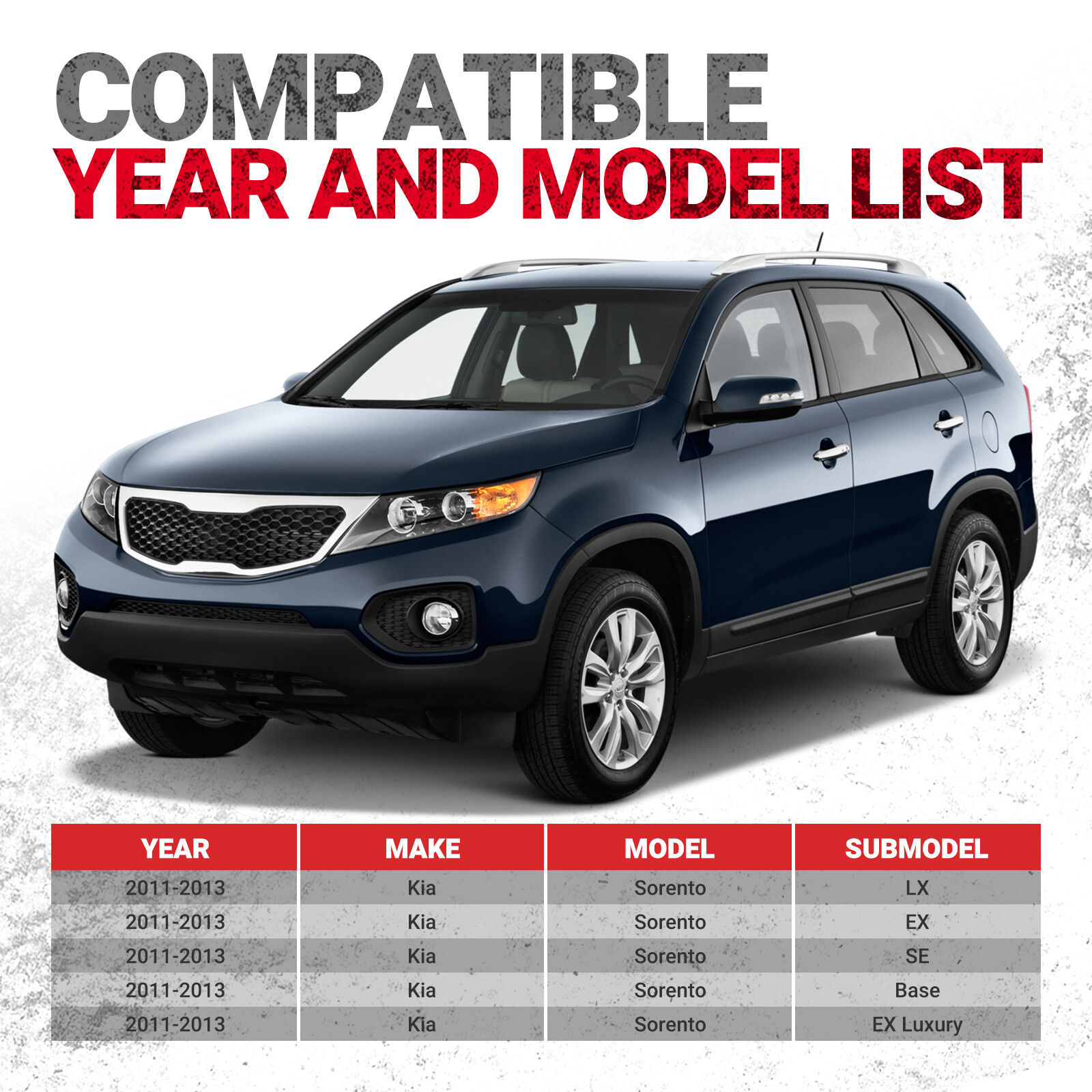 Fitments: For KIA Sorento 2013 Front Left/Right AWD 3.5L V6 3470cc/-cid For KIA Sorento 2011-2012 Front Left/Right 3.5L V6 3470cc/-cid For KIA Sorento 2011-2012 Front Left/Right 2.4L L4 2359cc/-cid