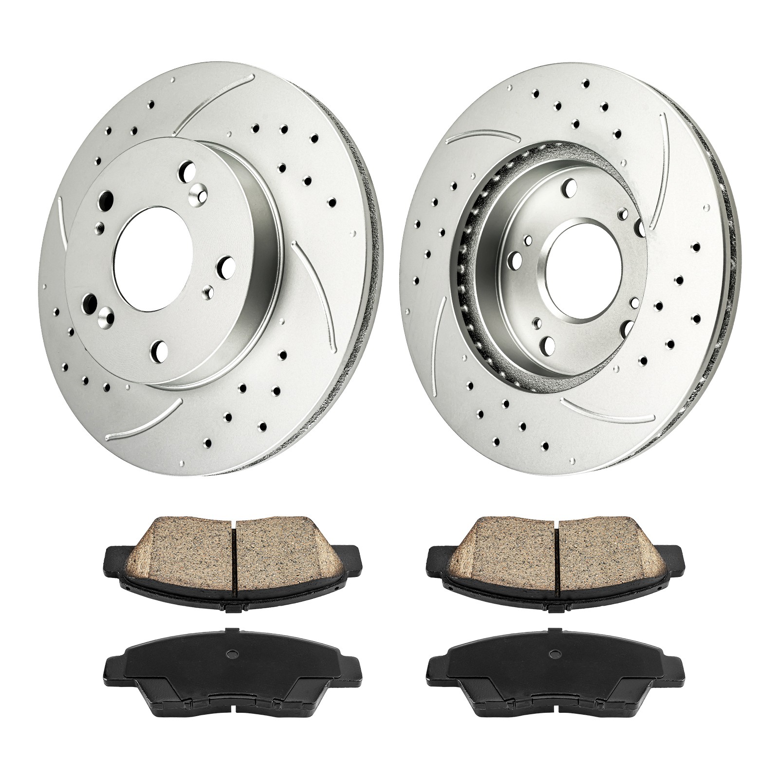 - Enhanced Performance: The drilled and slotted rotors help improve brake performance by providing efficient heat dissipation and reducing brake fade.