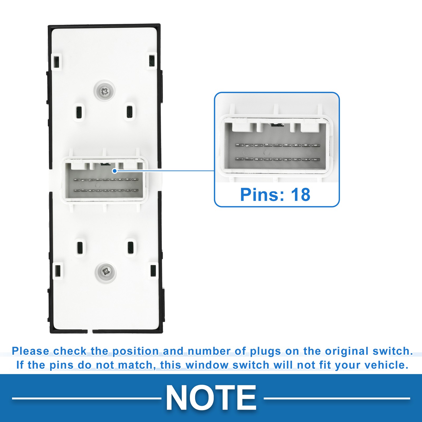 - If the pins do not match, this window switch will not fit your vehicle.