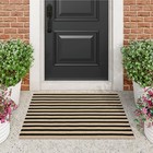 LEEVAN Black and Tan Striped Outdoor Rug, 2 x 3 Small Cotton Front Porch Rug .