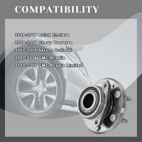 ?【Fitment】This 513277 wheel bearing hubs Assembly fit for 2008-2017 Buick Enclave, 2009-2017 Chevy Traverse, 2007-2016 GMC Acadia, 2017-2017 GMC Acadia Limited, 2007-2010 Saturn Outlook.
