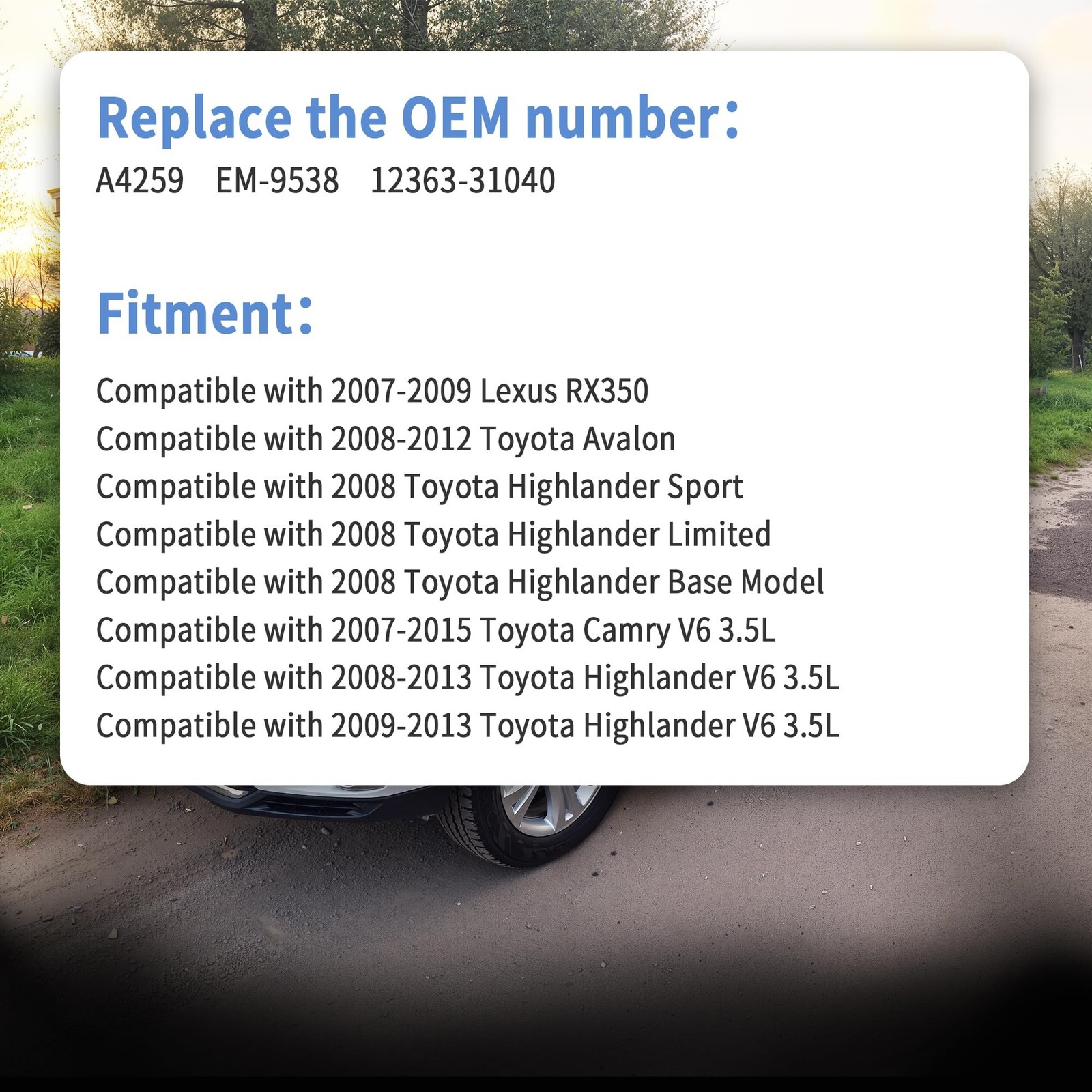 Compatible with Toyota Camry 2007-2016 V6-3.5L Manual & automatic transmission