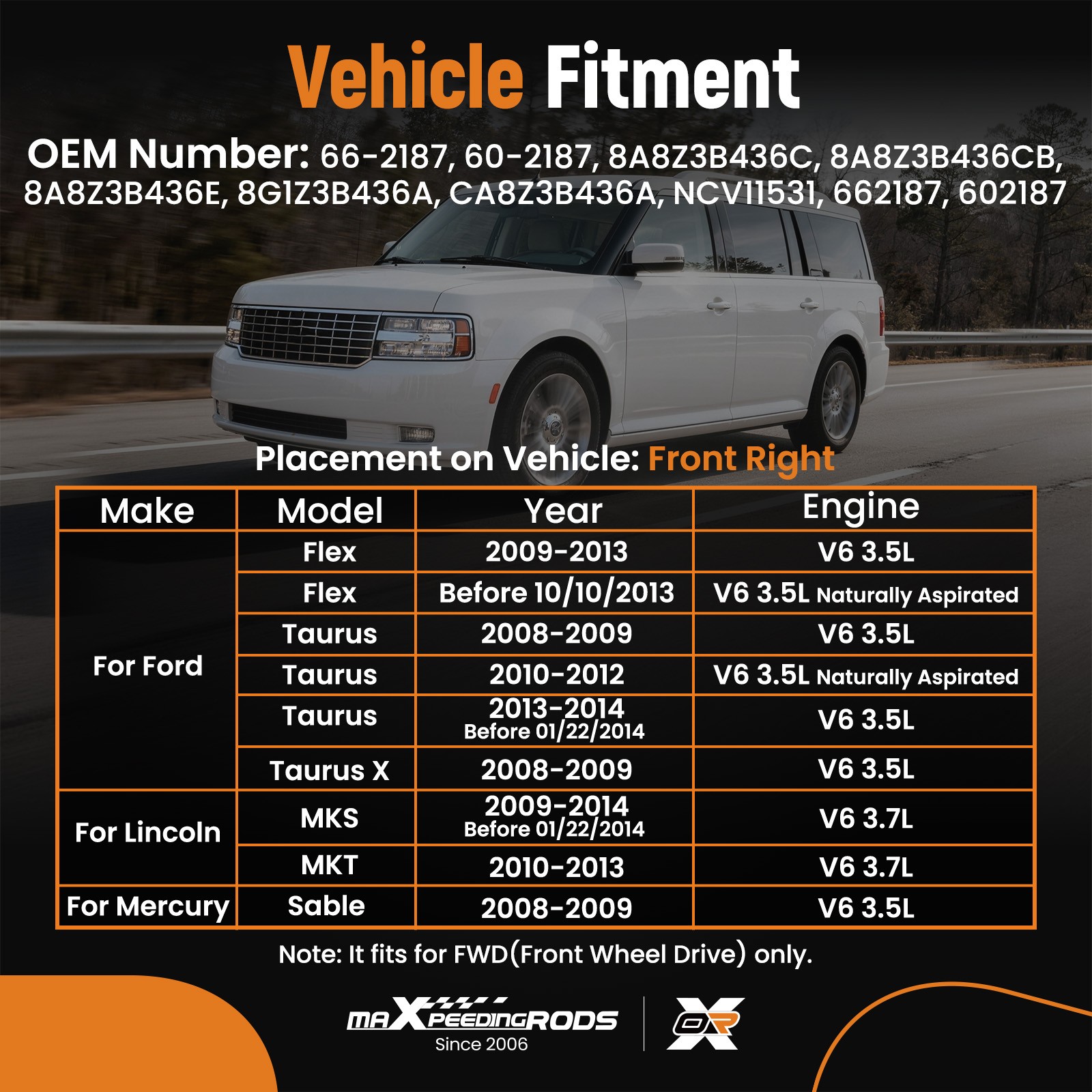 For Ford Flex V6 3.5L Front Right FWD, Naturally Aspirated, Before 10/10/2013 2014