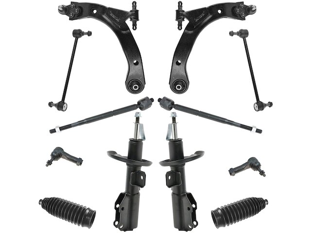 Package Contents: (2) Front Lower Control Arms with Ball Joints; (2) Front Sway Bar Links; (2) Front Outer Tie Rods; (2) Front Strut Assemblies; (2) Front Inner Tie Rods; (2) Front Steering Rack & Pinion Bellows