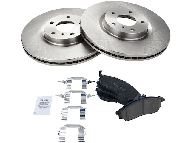 (2) Front Brake Rotors; (1) Front Ceramic Brake Pad Set; (1) Brake Cleaner & Fluid Kit