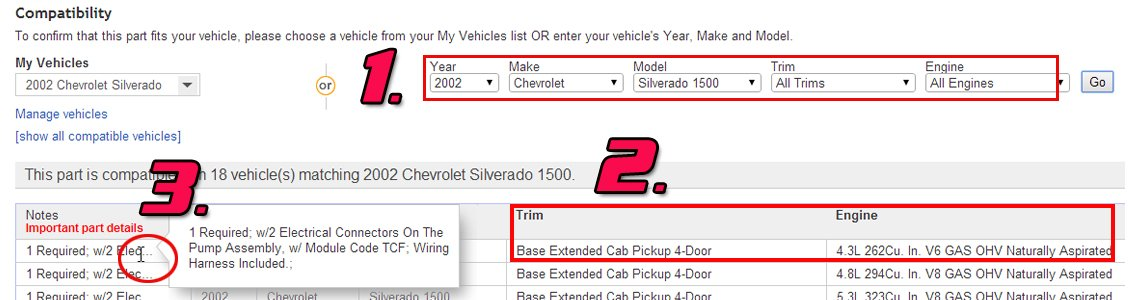 Make sure that you vehicle is found in the eBay Motor compability list above or in our compatibility summary.