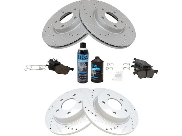 Package Contents: (1) Front Ceramic Brake Pad Set; (1) Rear Ceramic Brake Pad Set; (1) Brake Cleaner & Fluid Kit; (1) Front Premium G-Coated Performance Brake Rotor Set; (1) Rear Premium G-Coated Performance Brake Rotor Set