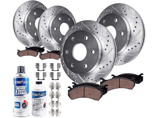Features:- Kit Includes: (4) Front Rear Drilled Slotted Brake Rotor + (4) Front Rear Ceramic Brake Pad + (2) Brake Cleaner & Fluid