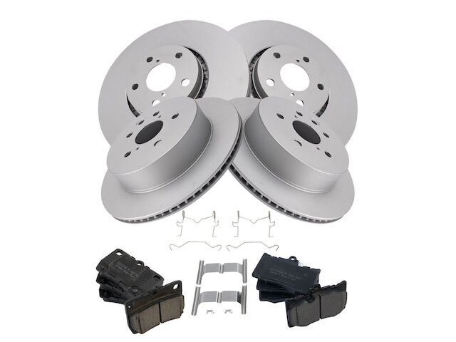 Package Contents: (1) Front Ceramic Brake Pad Set; (1) Rear Ceramic Brake Pad Set; (2) Front G-Coated Brake Rotors; (2) Rear G-Coated Brake Rotors