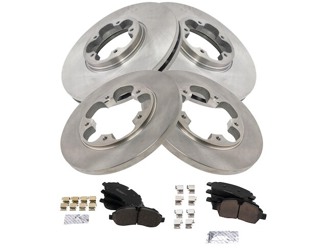 Package Contents: (2) Front Brake Rotors; (2) Rear Brake Rotors; (1) Front Ceramic Brake Pad Set; (1) Rear Ceramic Brake Pad Set